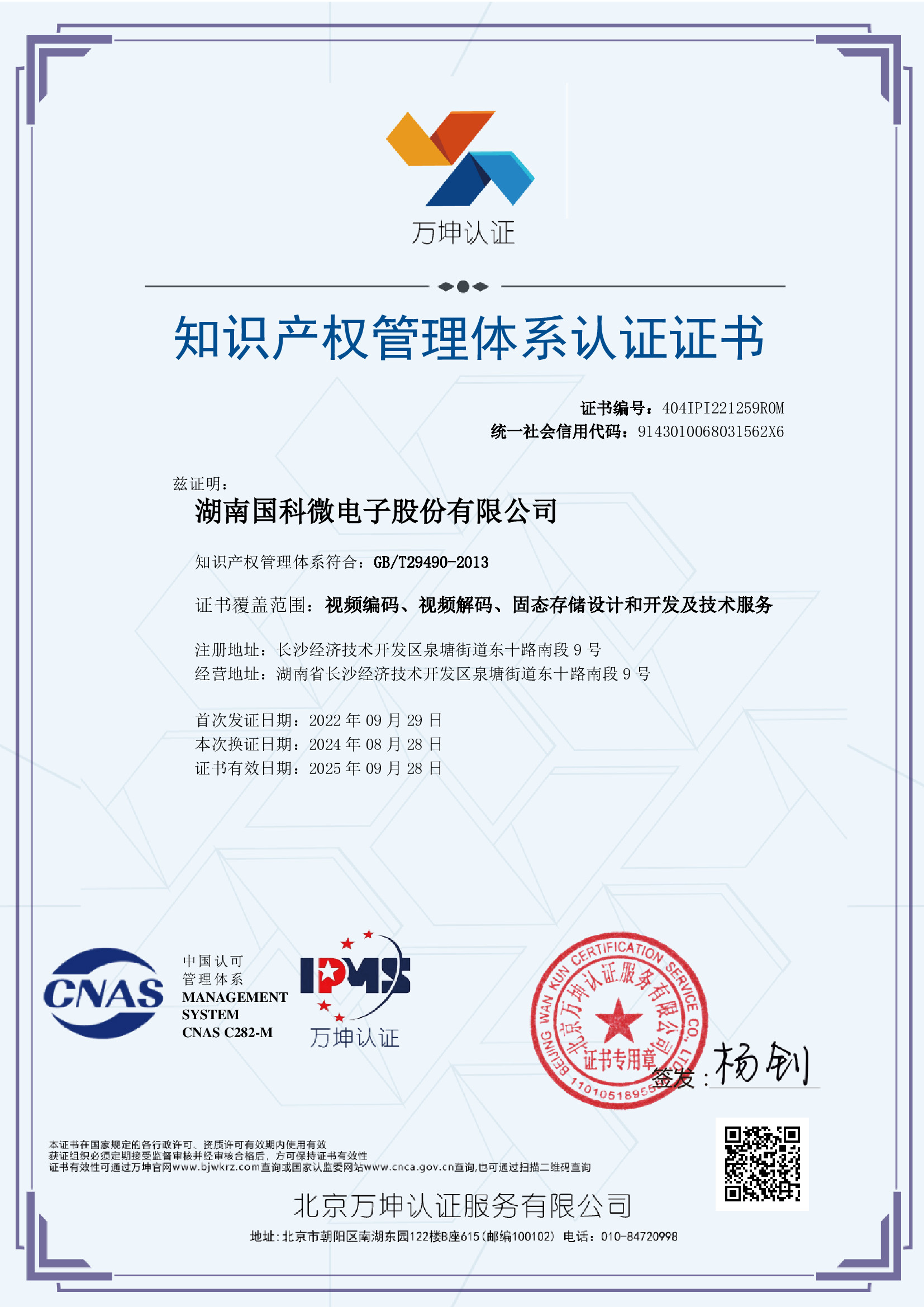 知識產權管理體系認證證書