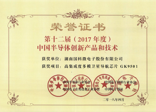 第十二屆(2017年度)中國半導體創新產品和技術GK9501